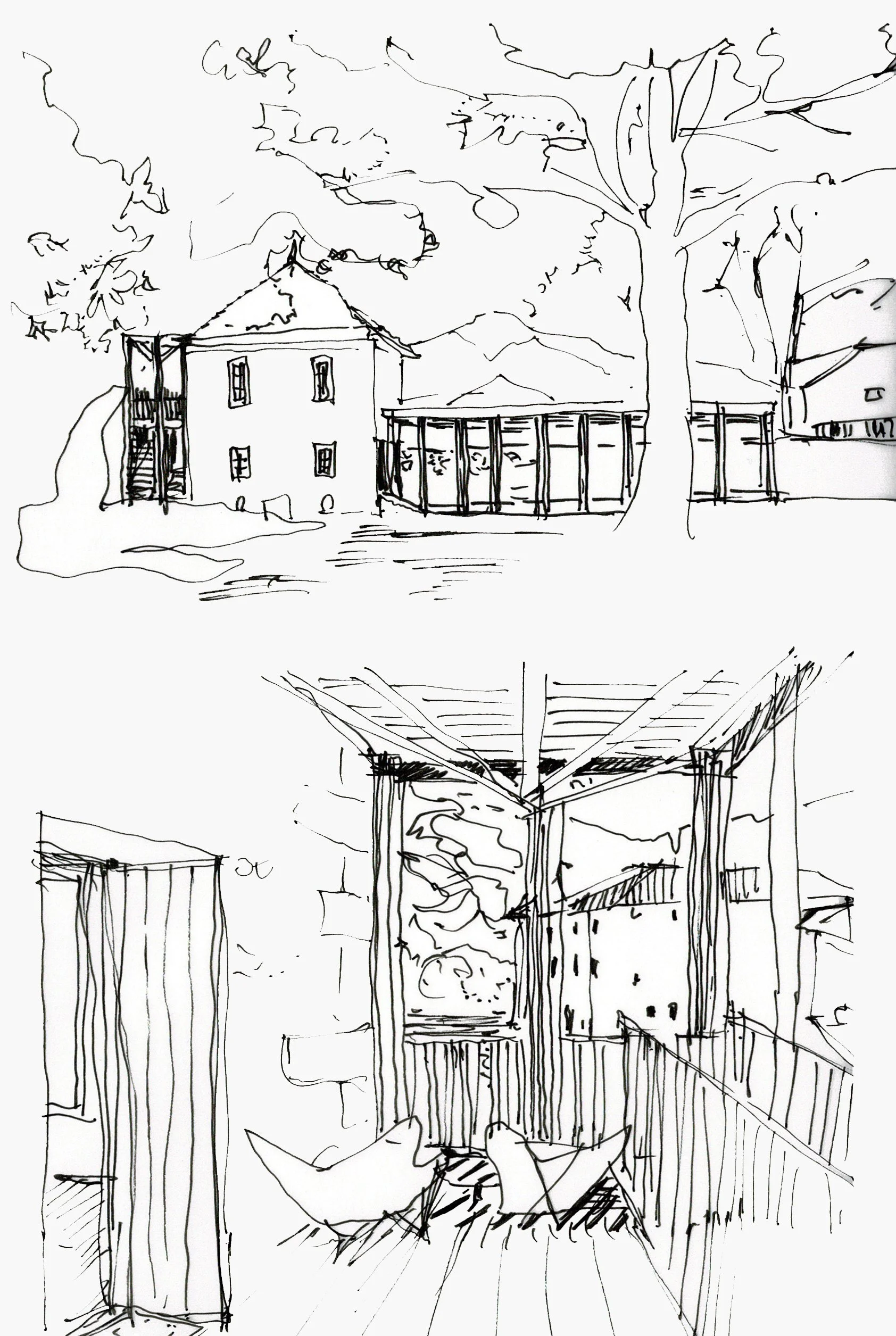 Pour cela, il est envisagé de créer d’une part, un escalier extérieur dans un langage traditionnel et local et d’autre part, un auvent le long du mur existant.